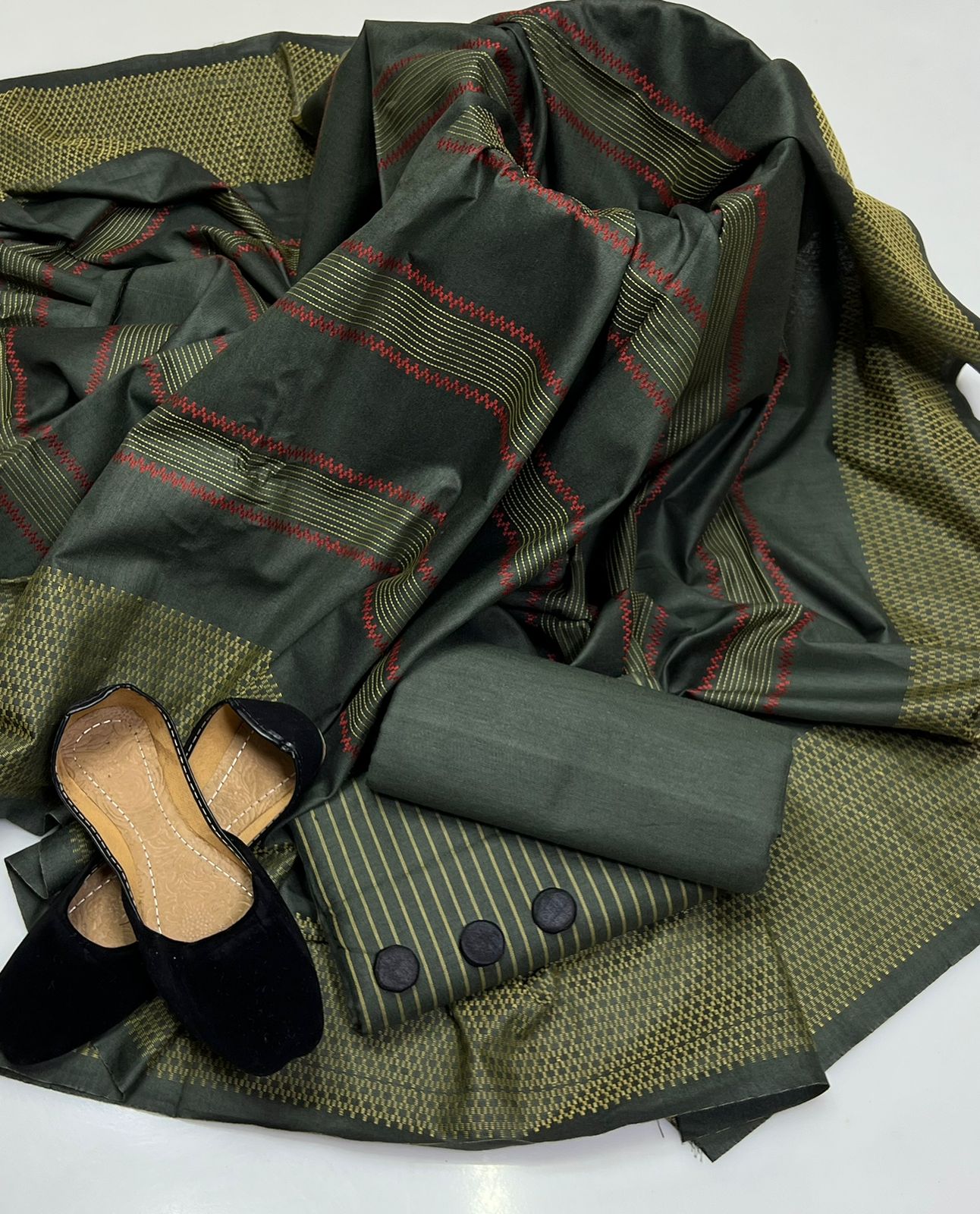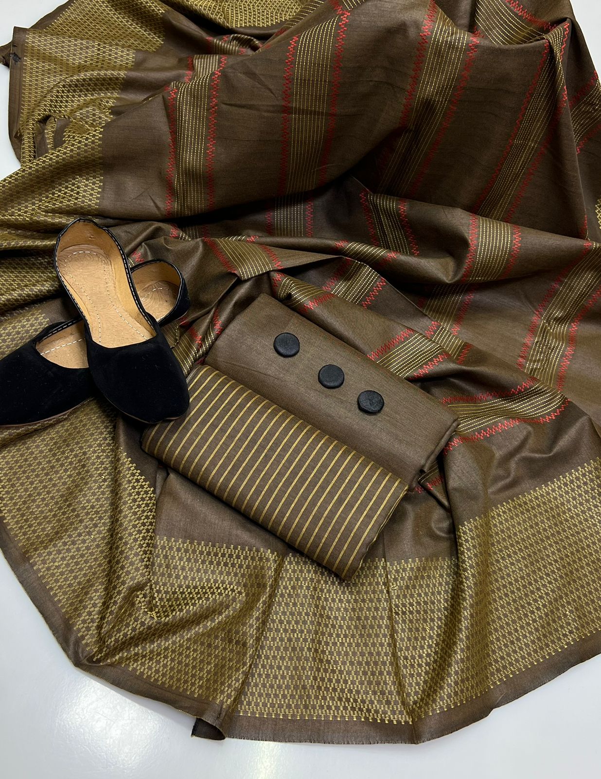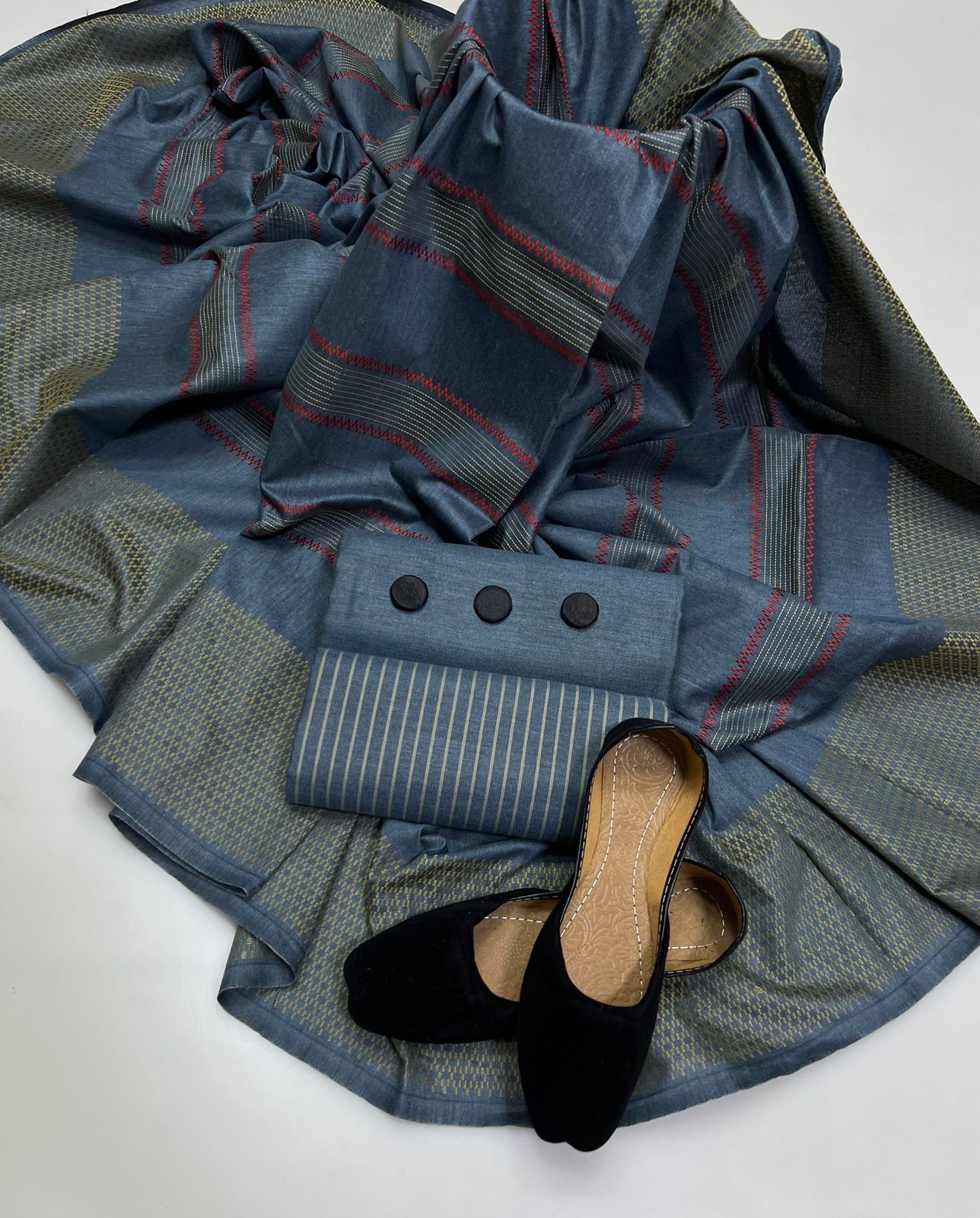 Acrylic wool plain shirt and acrylic wool lining trouser with multy banarsi border wool shawl